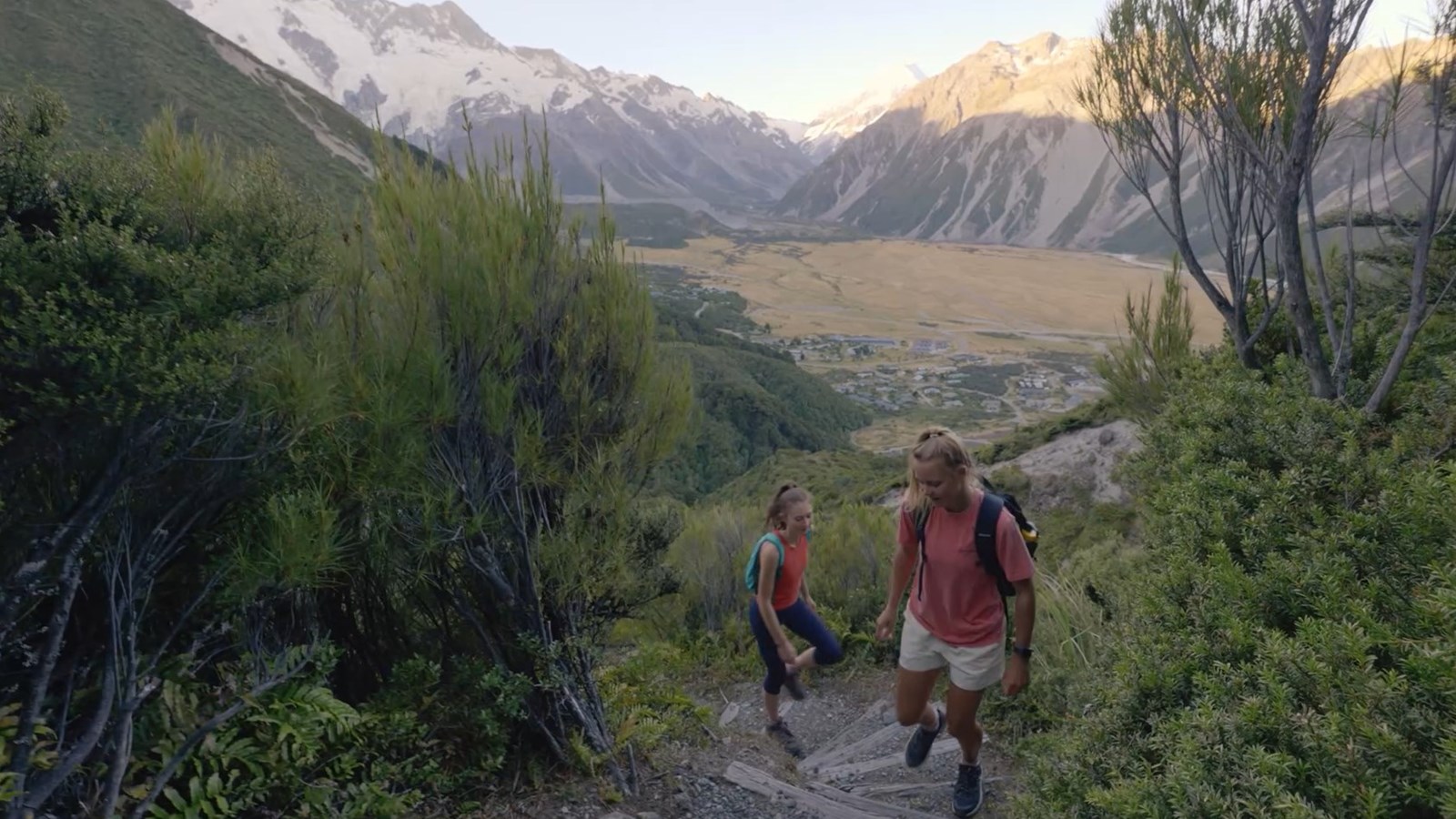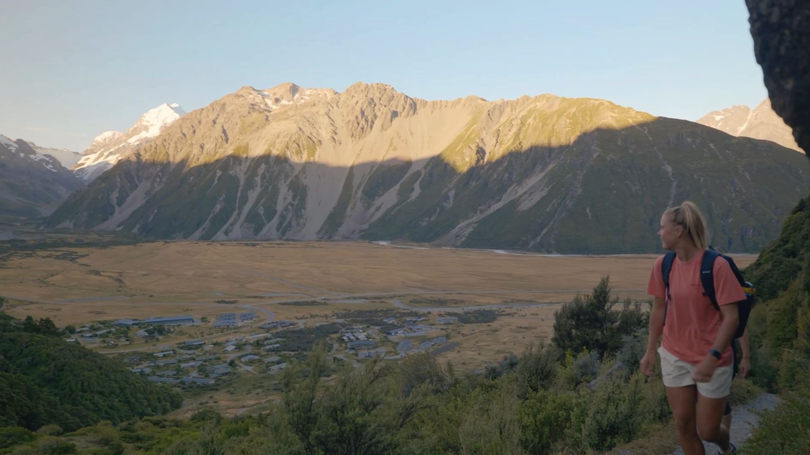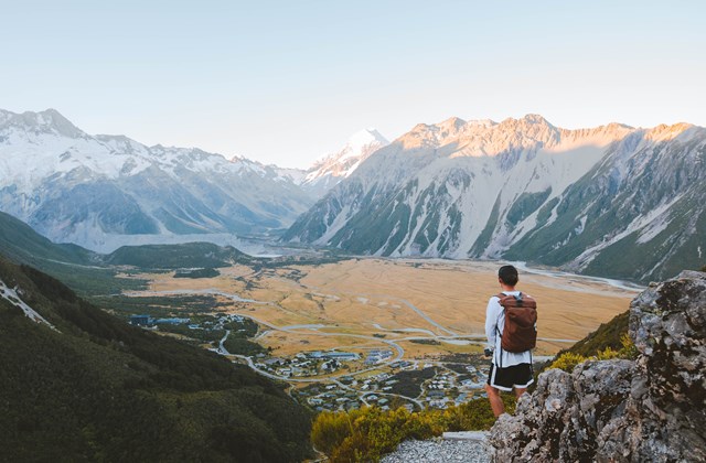 Sunrise and sunset are both excellent times to walk this track. In the morning, the first light catches the peaks while the valley is still in shadow. In the evening, the soft colours of sunset light up the sky above Aoraki.