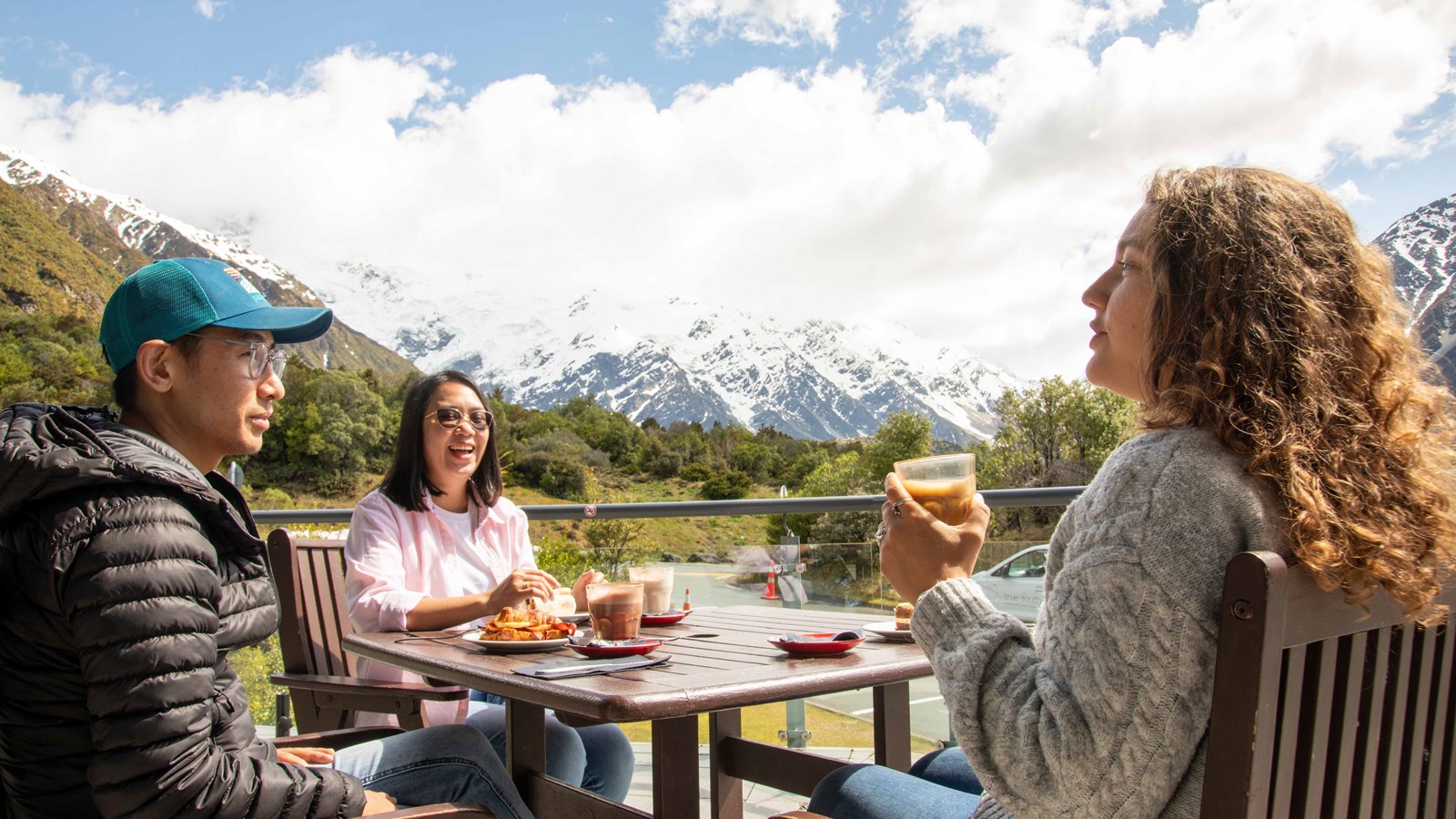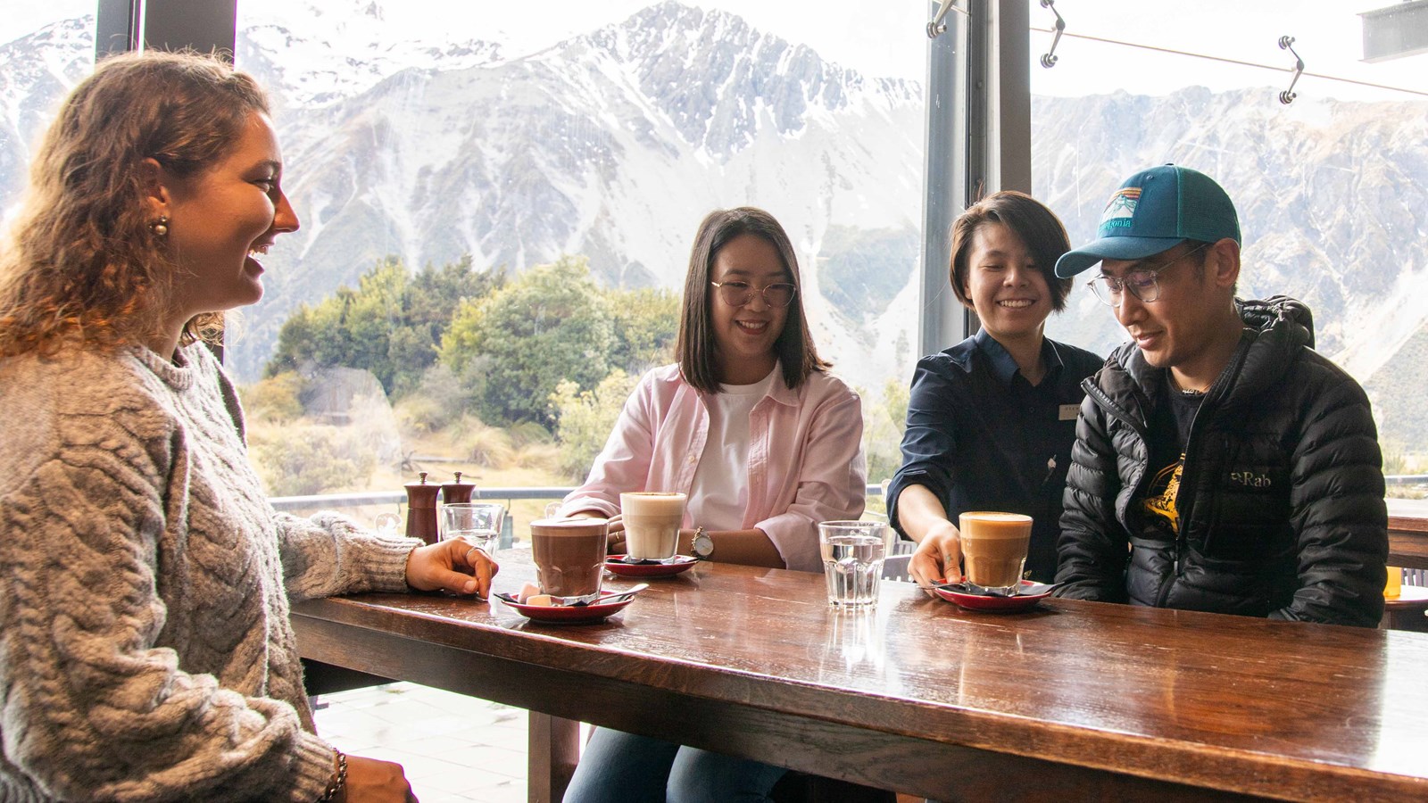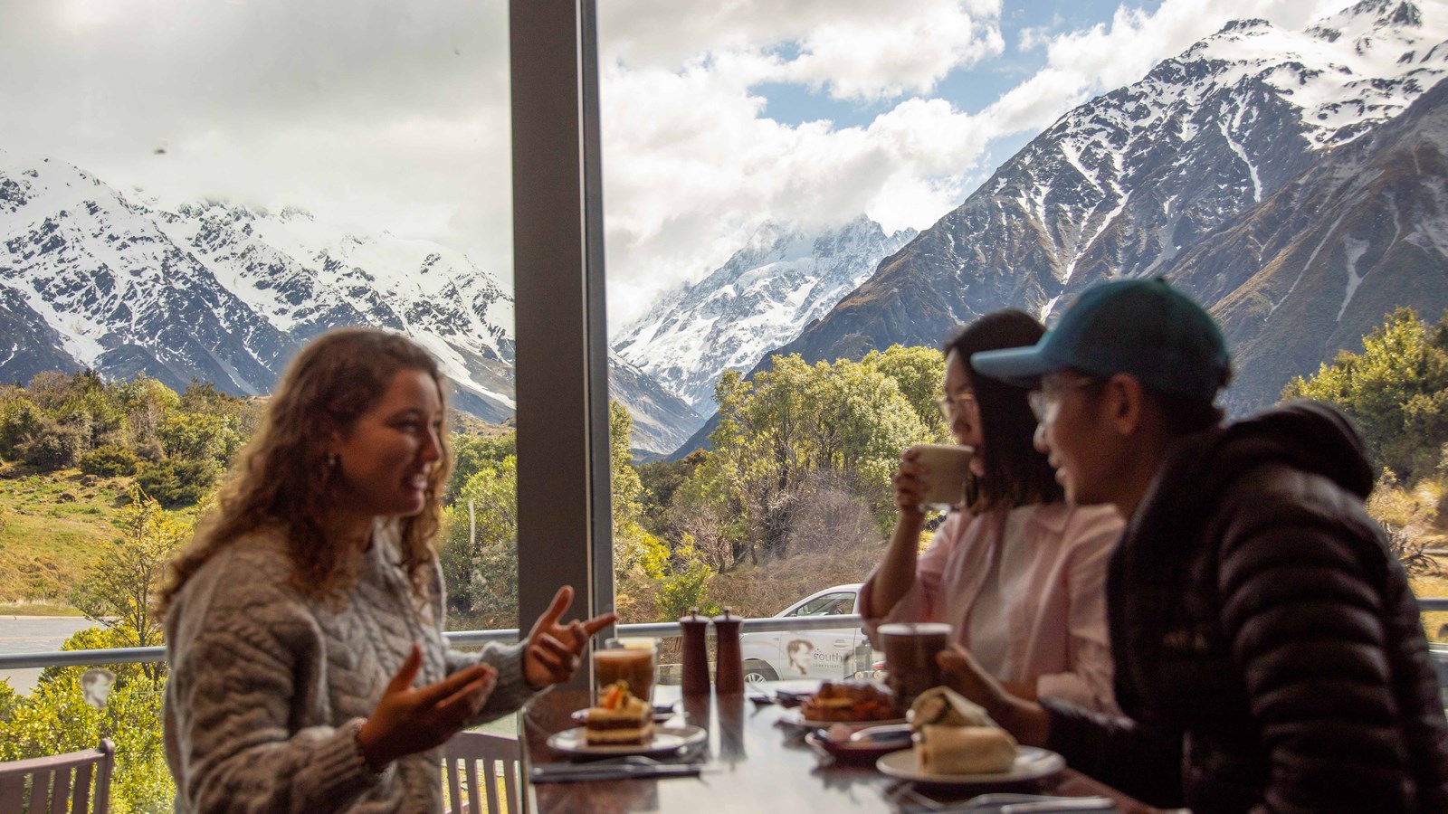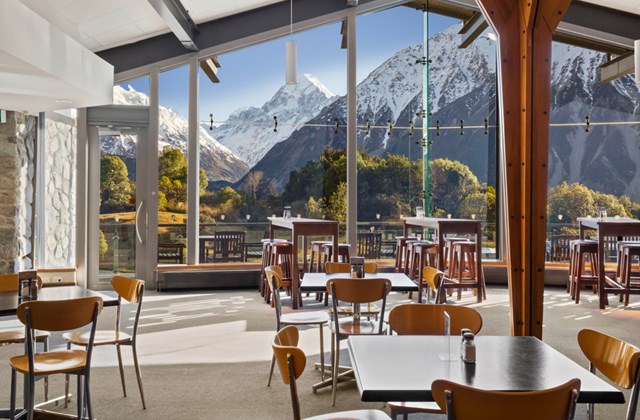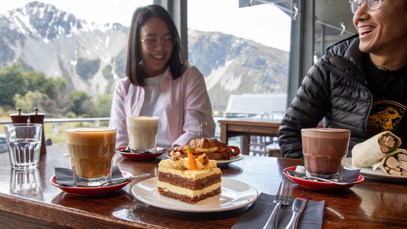 Take in floor to ceiling views of mighty Aoraki/Mount Cook over a coffee and a slice or grab some food to take with you on the trails.