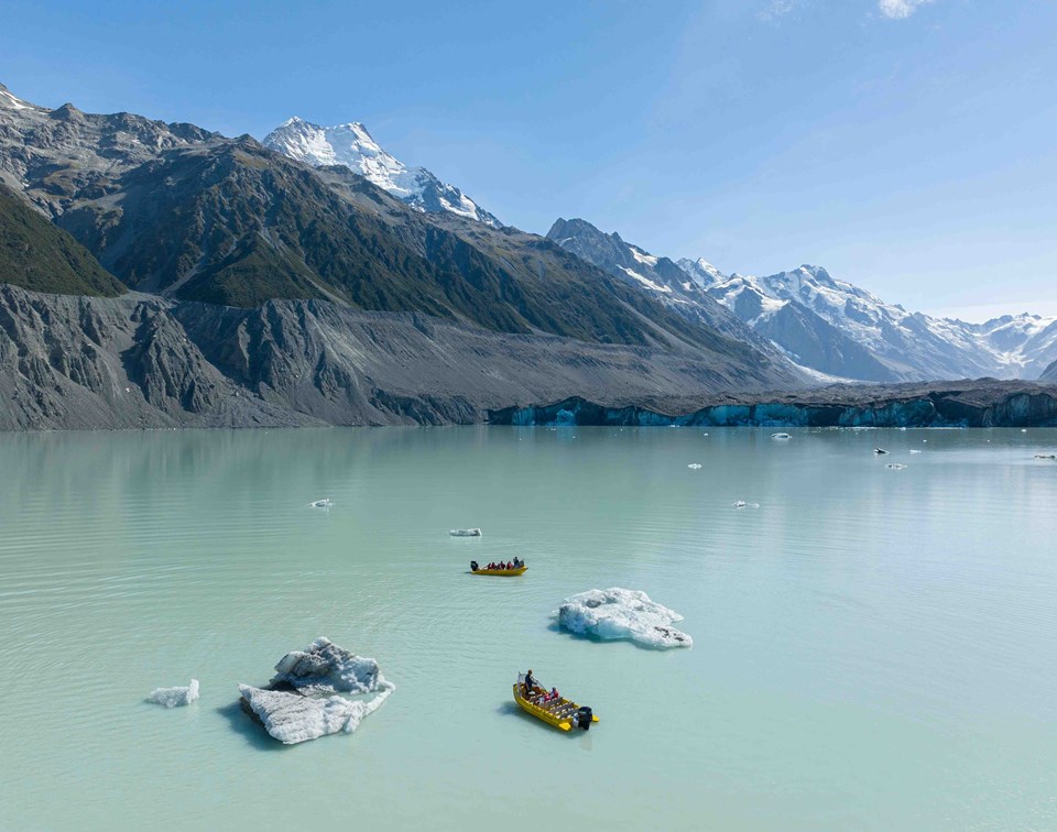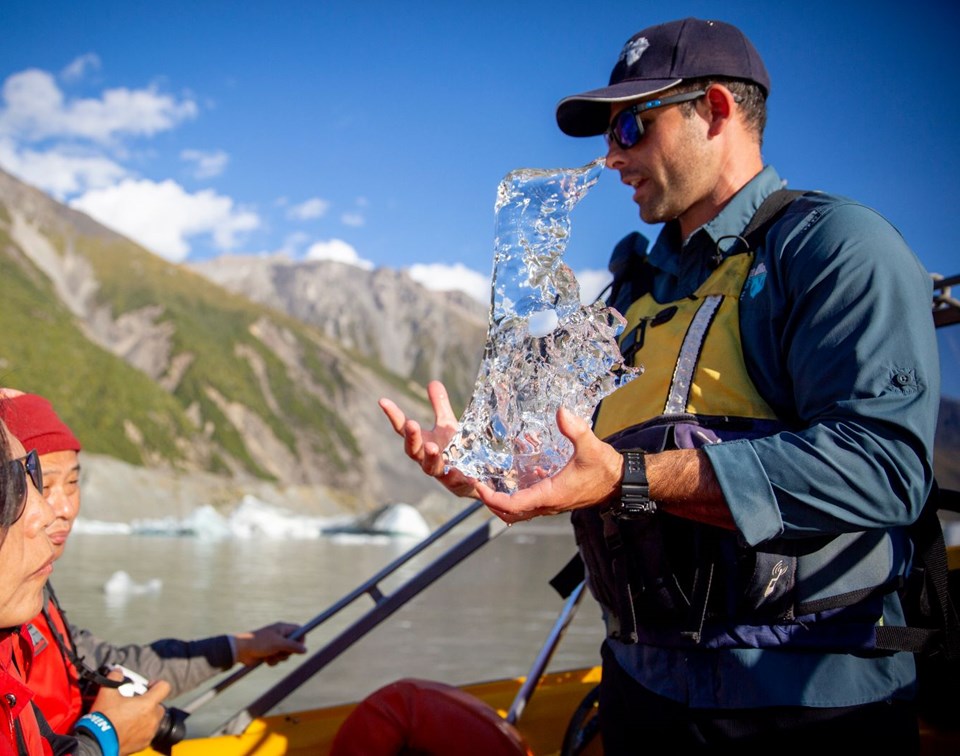 - Guests will then board the Glacier Explorers boat from the Tasman Lake jetty.
