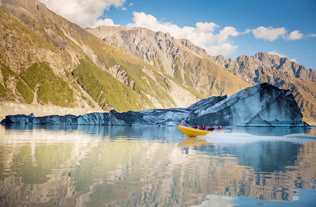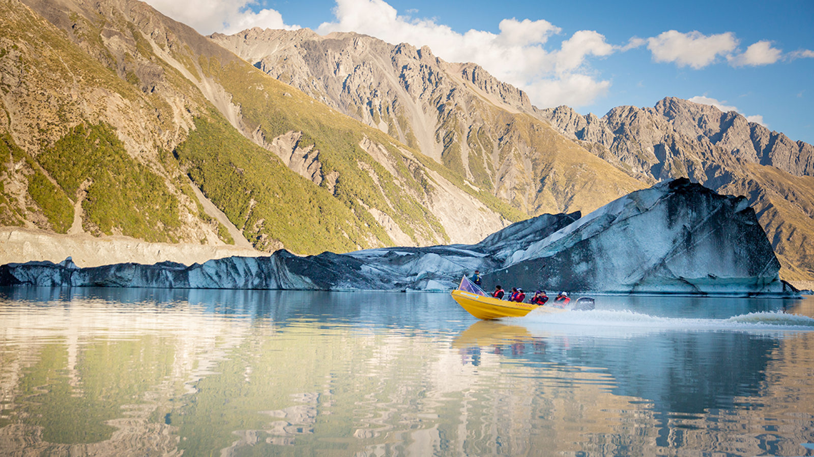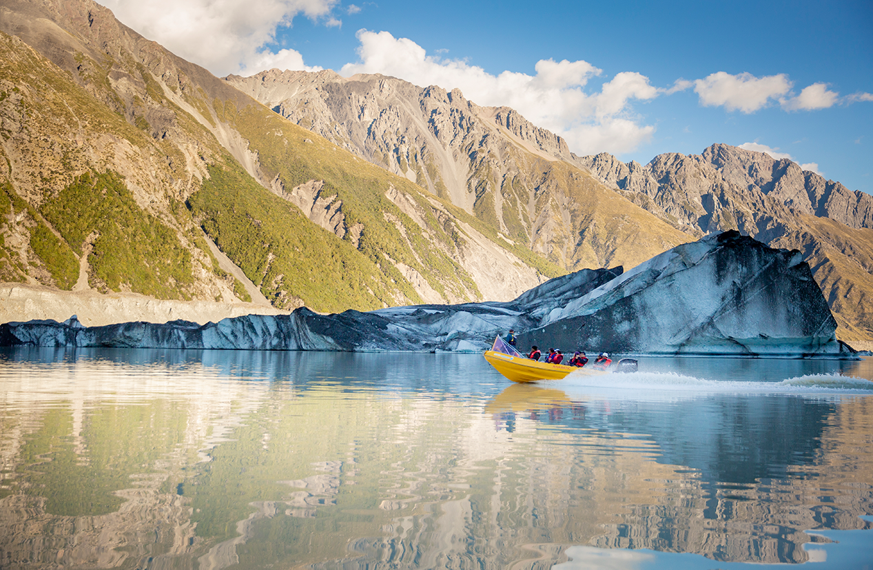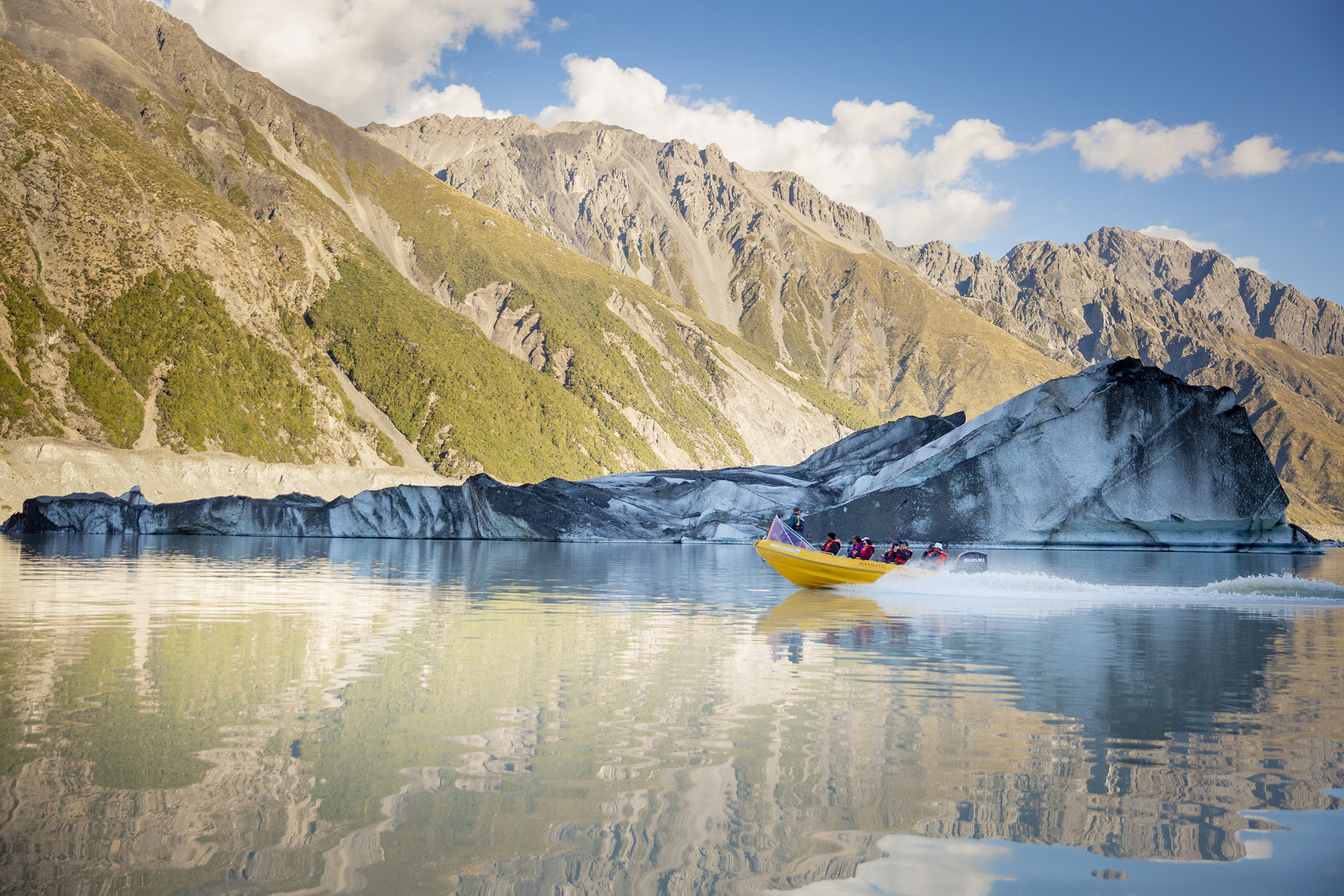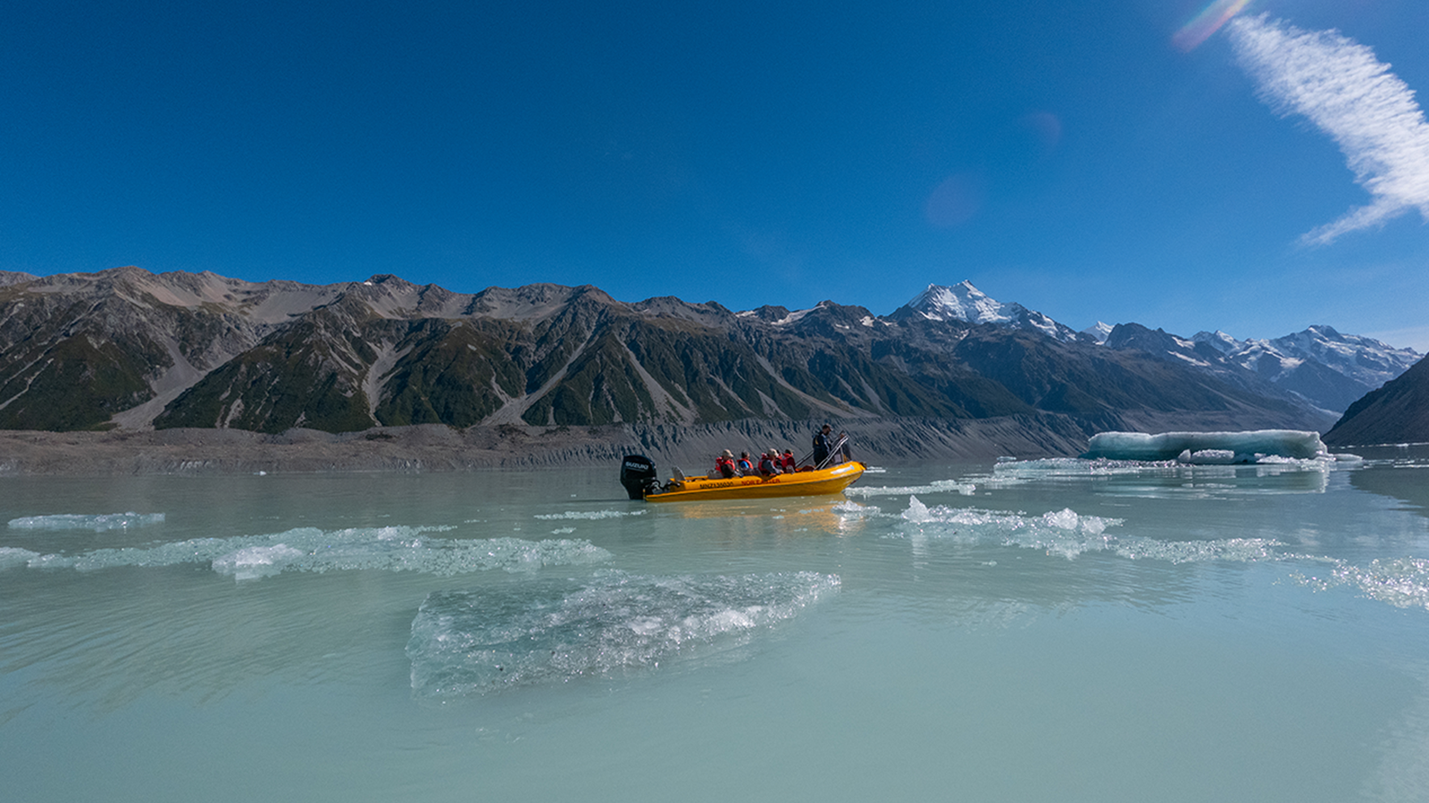 - Guests will then board the Glacier Explorers boat from the Tasman Lake jetty.