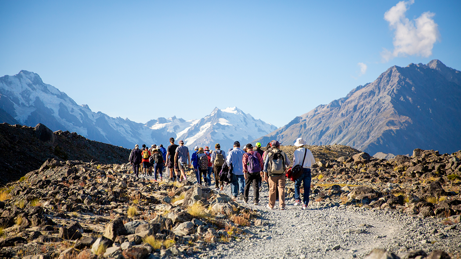 - The group will then bus out to the Tasman Valley, a short drive away from Mount Cook village.
