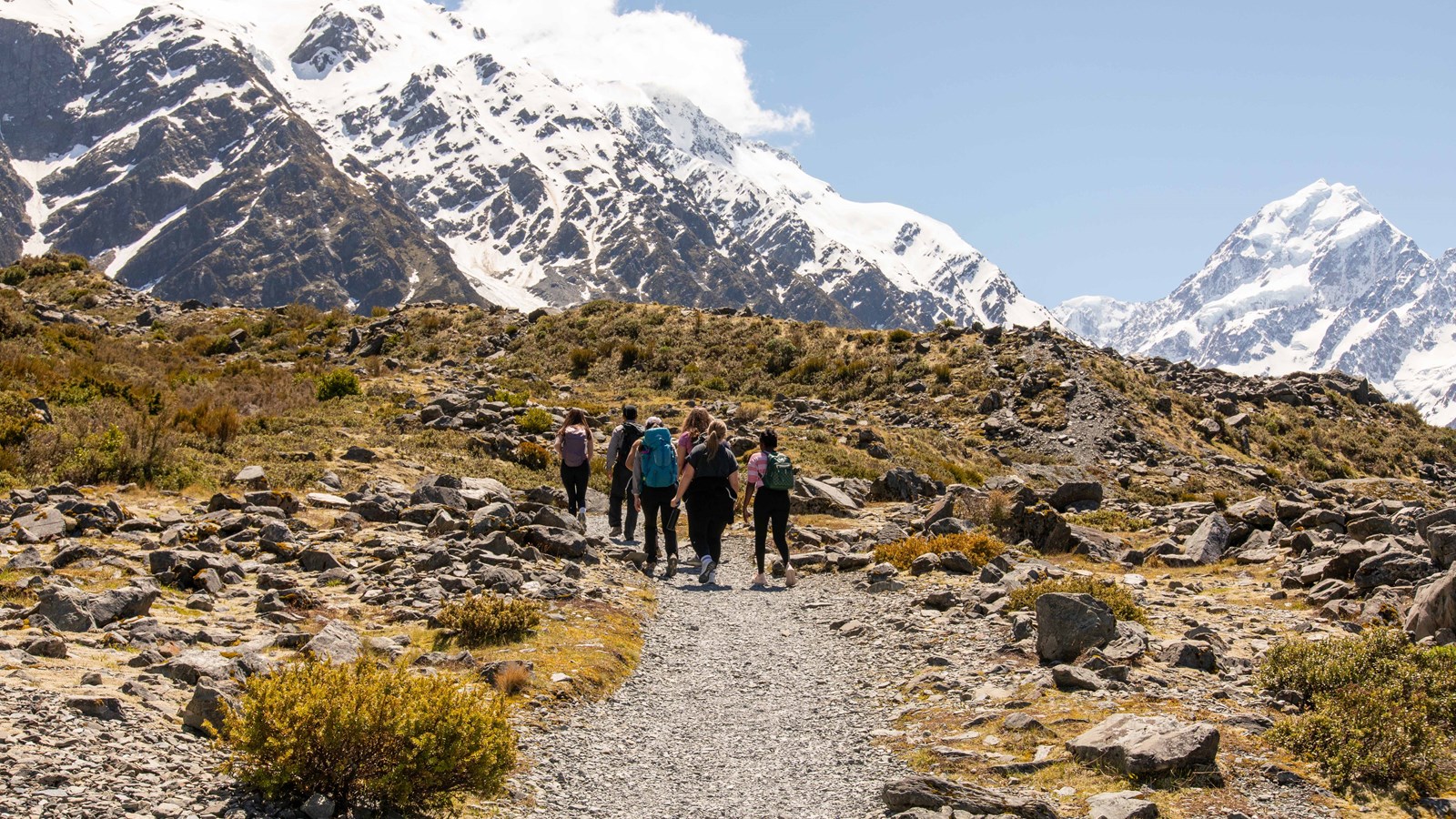 Explore Aoraki with guided hikes of the Hooker Valley, Kea Point, Red Tarns & Sealy Tarns.