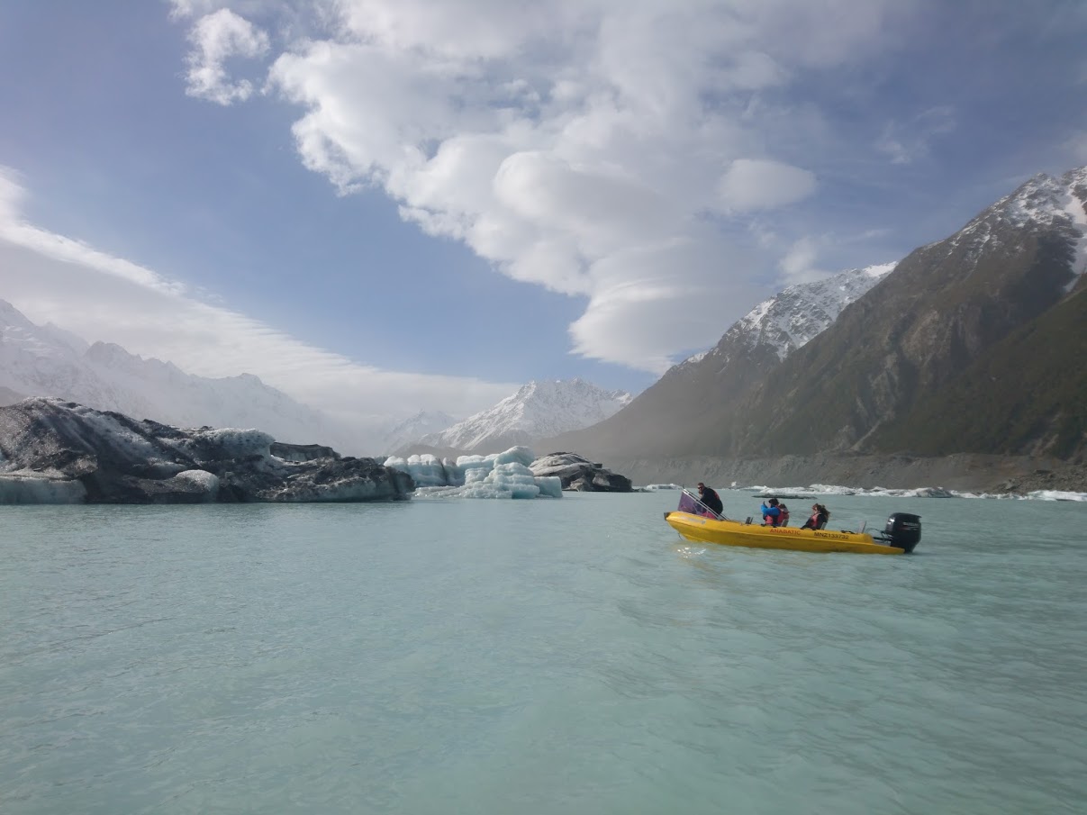 The Tasman Glacier has had multiple large calvings over the last couple of years, and the sub minus temperatures we get in winter tends to preserve any existing icebergs during that period. The Glacier Explorers boats can’t operate in winter though as not only would it be uncomfortably cold, but the lake usually freezes over, meaning we couldn’t operate even if we wanted to! Instead, in July and August our hardworking guides are rewarded with a much-needed break and the boats are helicoptered out of the lake and transported to Ashburton where they undertake maintenance and upgrades.