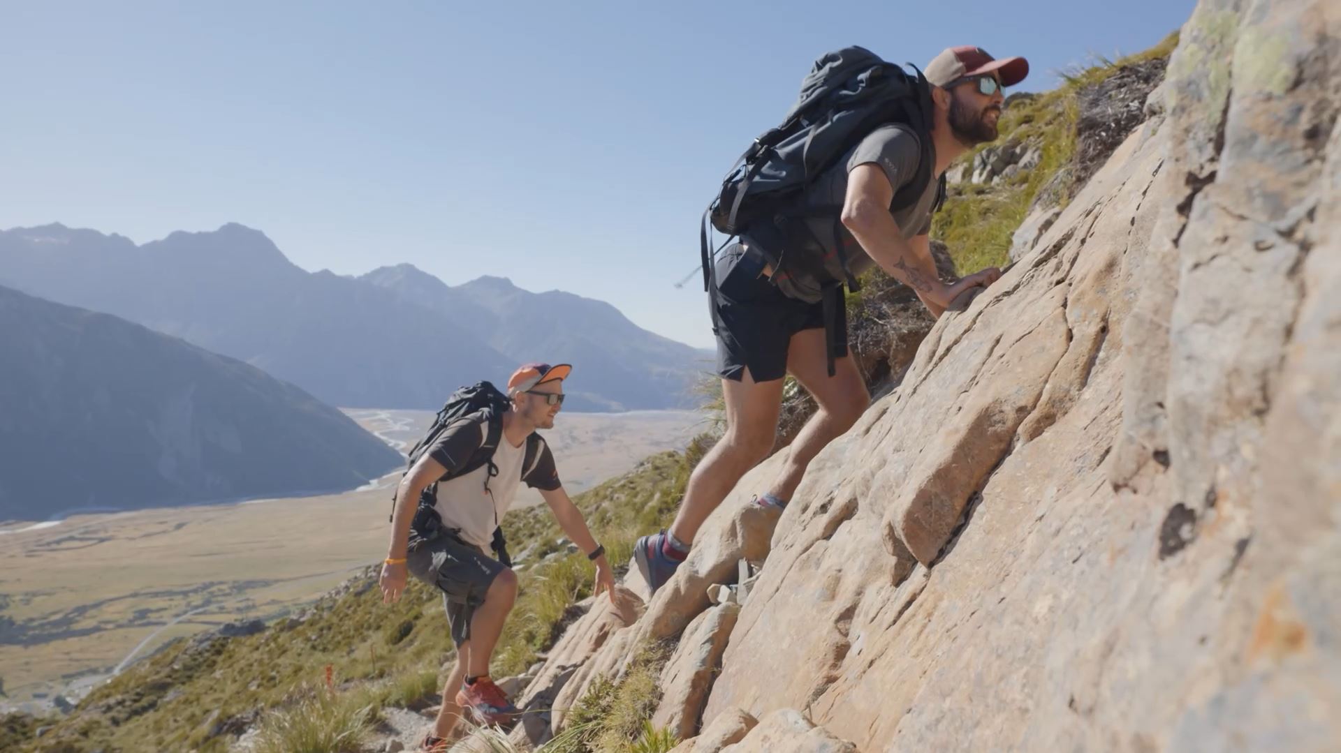 The hike from Sealy up to Mueller Hut is quite an adventure, which includes a bit of a scramble up and over large rocks. At times the rocky environment makes you feel like you're on a completely different planet! Rock boulders transition into gravel before the skyline ridge, so make sure your shoes have decent grip to keep you upright and to avoid any unnecessary tumbles. Enjoy the sweet views on the ridgeline, you may even hear the sounds of Mount Sefton's rumbling before you set off for the final stretch to Mueller Hut.