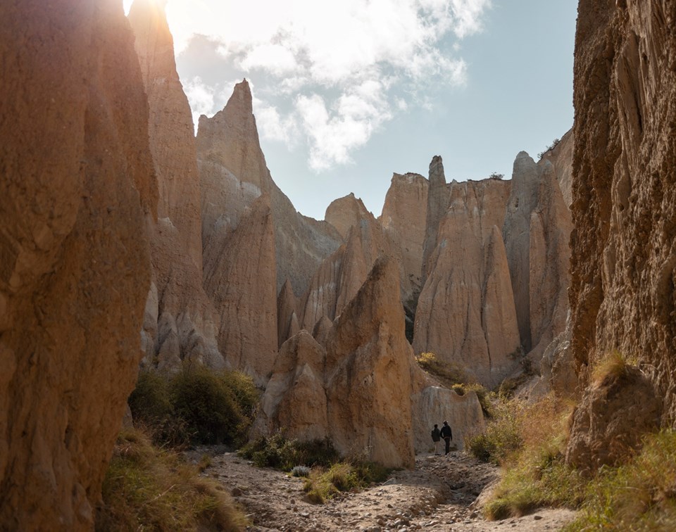 Rolling into Omarama is a real treat after the long and windy road through Lindis Pass. Maori for ‘place of light’, Omarama is home to world class gliding, soothing outdoor hot tubs and the Paritea clay cliffs. Located ten kms west of Omarama, the clay cliffs are millions of years old and are tall pinnacles, separated by narrow ravines that look like they belong in a different world. Back in Omarama you can pay a visit to the Wrinkly Ram café and enjoy a sheep shearing show, it’s quite an experience!